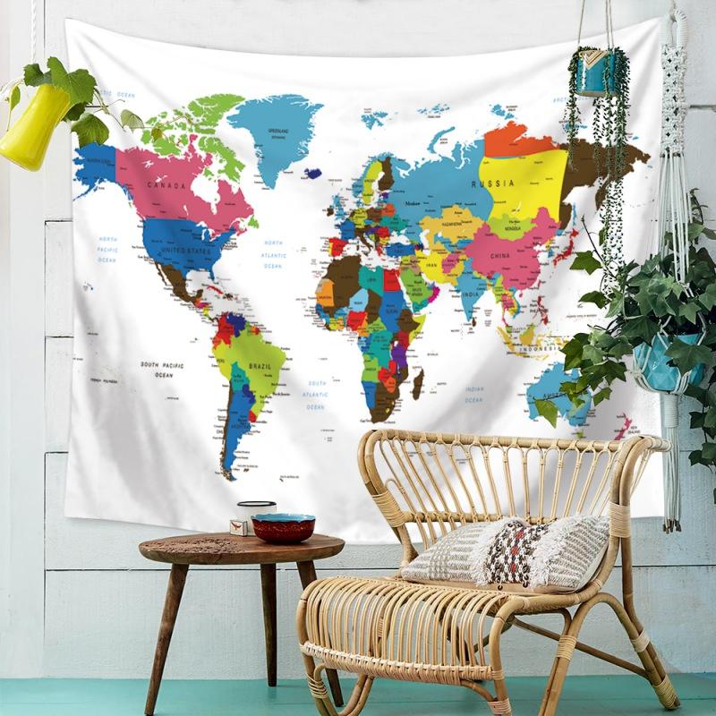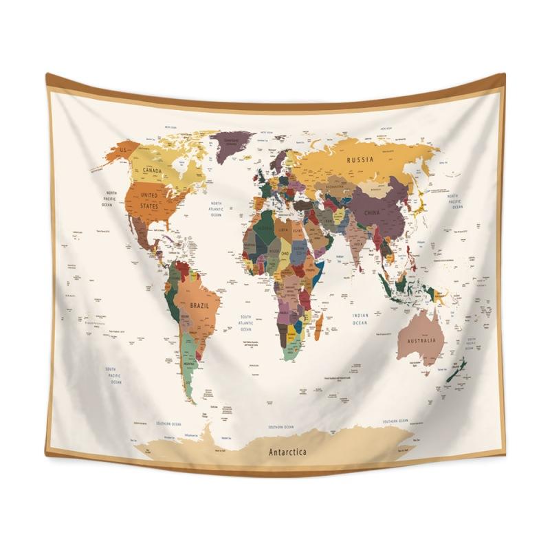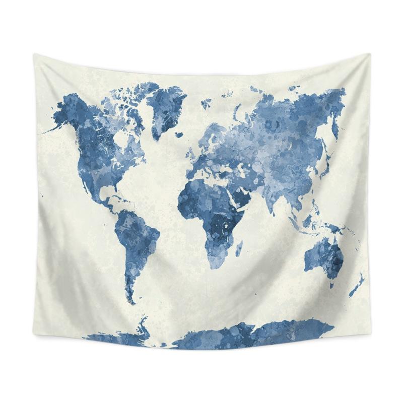 Акварельный гобелен с картой мира, абстрактное искусство, живопись, настенный гобелен, пляжное одеяло, коврик для йоги, прокладка