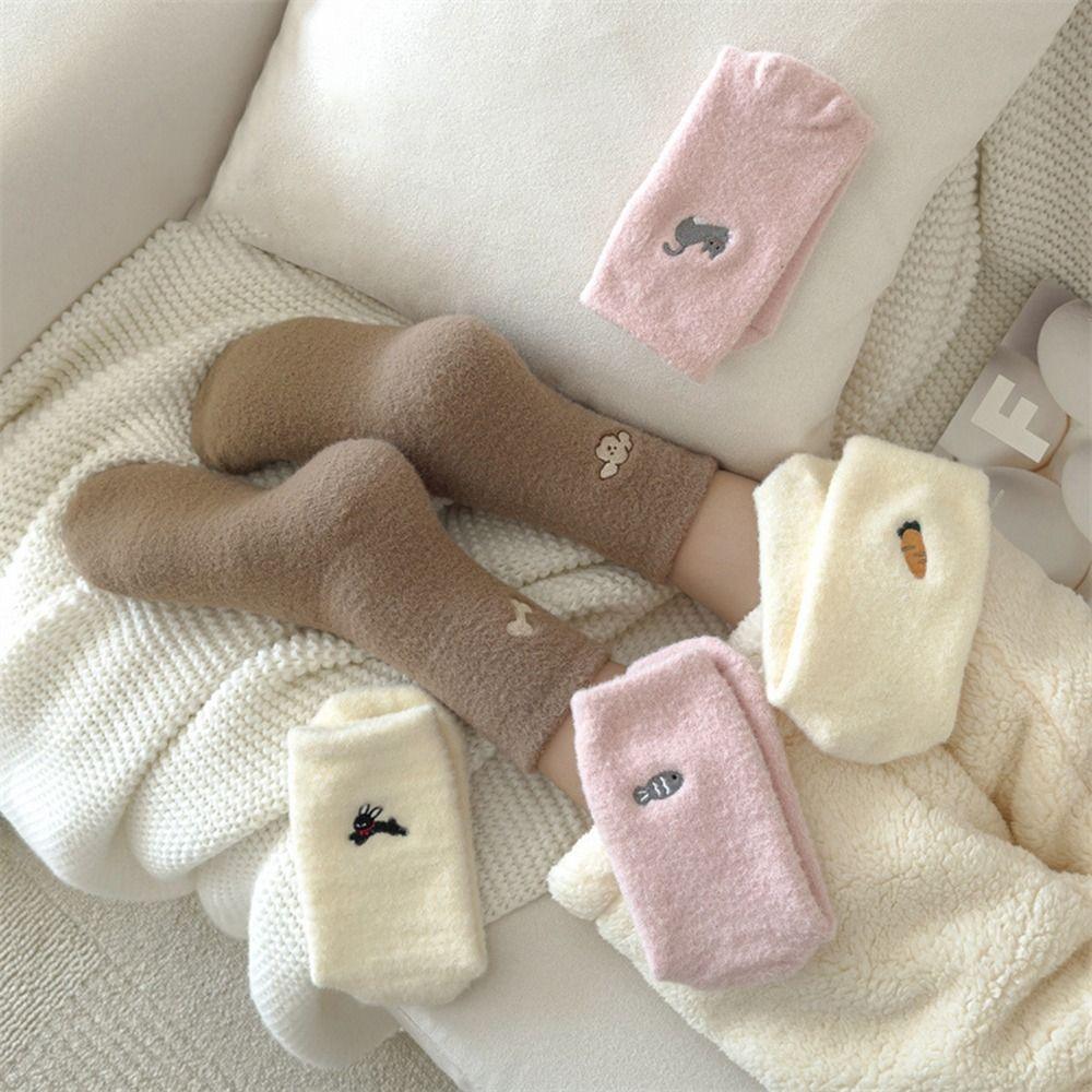 Antiskid Floor Sleep Sock Thick Mid Socks New Double-sided Cashmere Socks Women