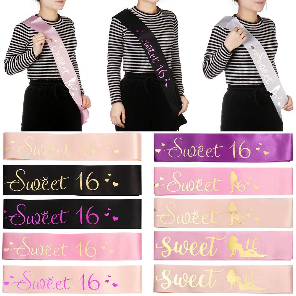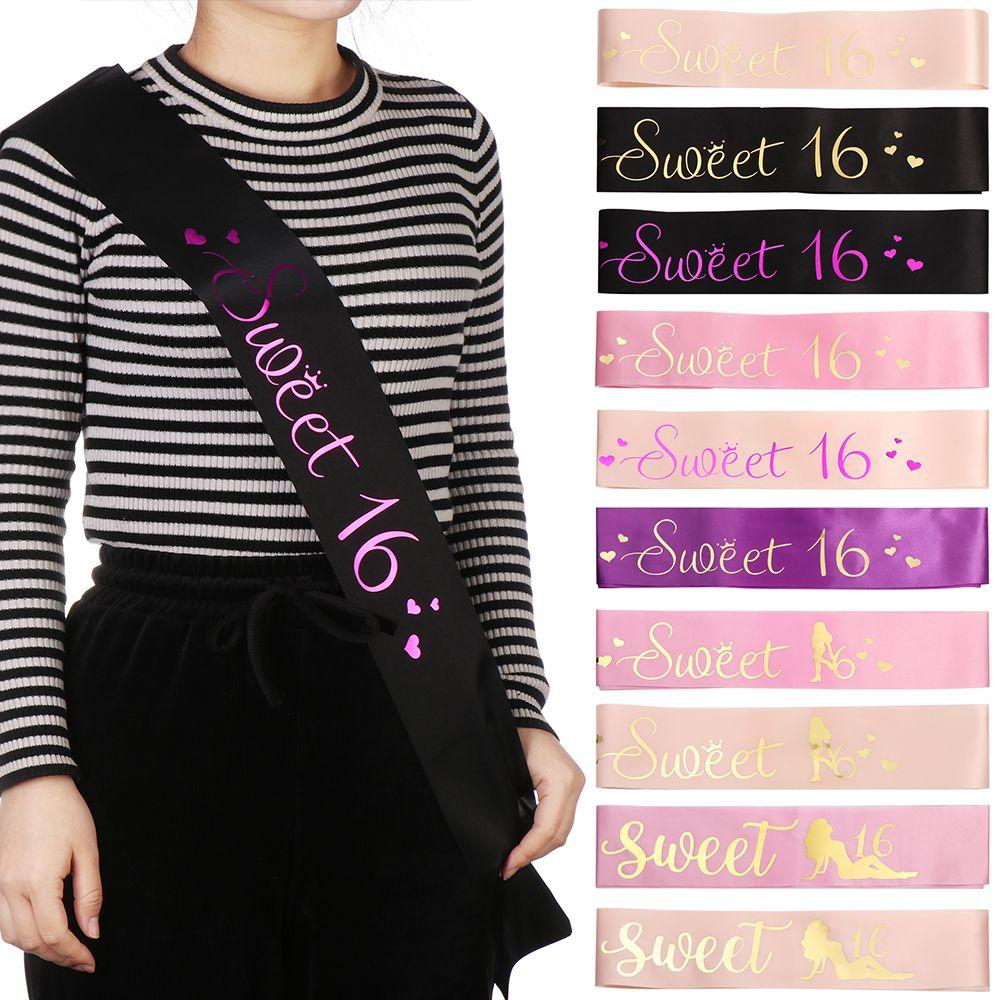 1 шт. Подарки для вечеринок, блестящий сувенир, с днем рождения, атласный пояс, сладкий 16-й пояс на плечо