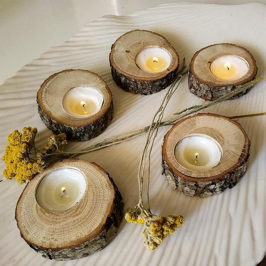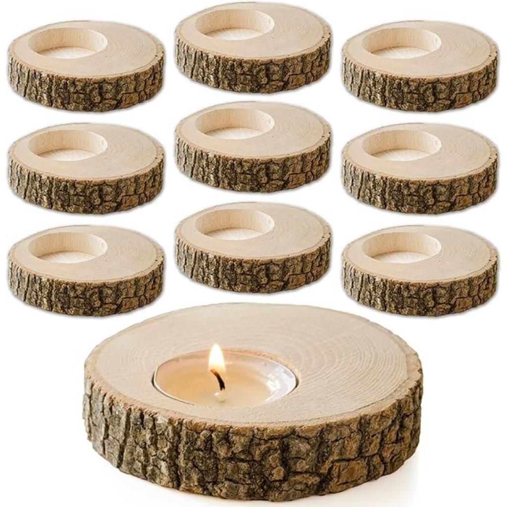 Подсвечники для чайных свечей из дерева - 2 шт. Очаровательные благодарственные подарки, идеально подходят для свадебных подарков, идеальный элемент деревенского декора и подарок для украшения вечеринки