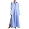 Женское платье-рубашка с лацканами, длинным рукавом, боковым разрезом, повседневная рубашка, однотонное платье макси с застежкой на пуговицы, повседневная одежда