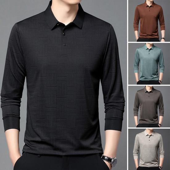 Модный клетчатый дизайн: Этот мужской топ отличается повседневным и стильным дизайном, имеет классический крой и воротник на пуговицах, что придает ему модный вид.. Дизайн с лацканами и длинными рукавами, украшенный уникальными клетчатыми узорами, добавит вашему гардеробу нотку модной универсальности.