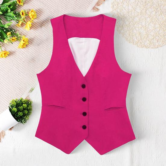 Представляем наш стильный женский жилет, который станет обязательным дополнением к вашему гардеробу.. Этот короткий жилет имеет однобортный дизайн с карманами, сочетающий в себе функциональность и модный вид.. Сплошной цвет добавляет нотку элегантности, делая его идеальным для различных случаев.