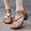 Туфли-лодочки с ретро-принтом, женская модная обувь на высоком каблуке, винтажные цветочные туфли с круглым носком