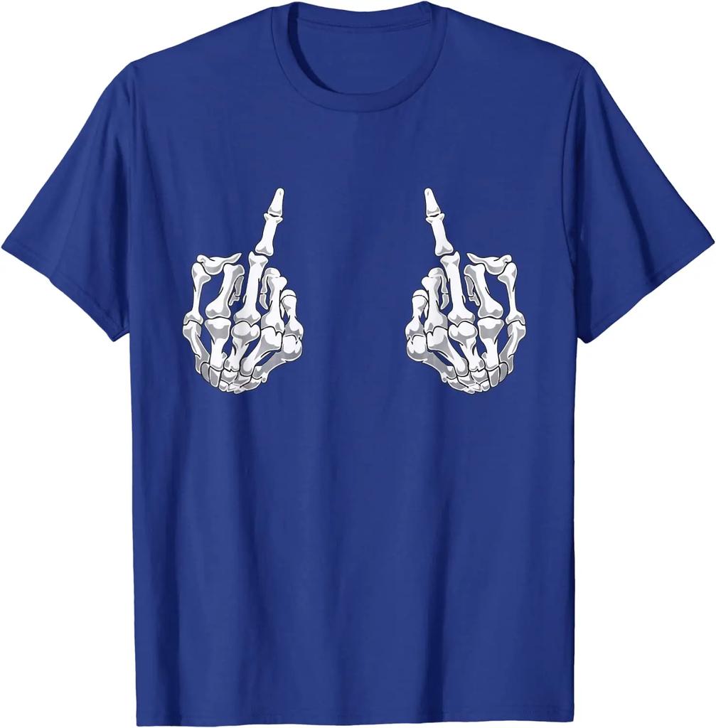 Рука скелета Хэллоуин Кости Средний палец Череп Мужчины Женщины Футболка Fxk Повседневный Четыре сезона Мужские футболки Homme