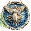 1 шт. 2D Плоский круглый деревянный настенный рисунок в стиле ангела - декоративный знак в классическом стиле - 20 см настенный, не требует электричества, универсальное использование для дома