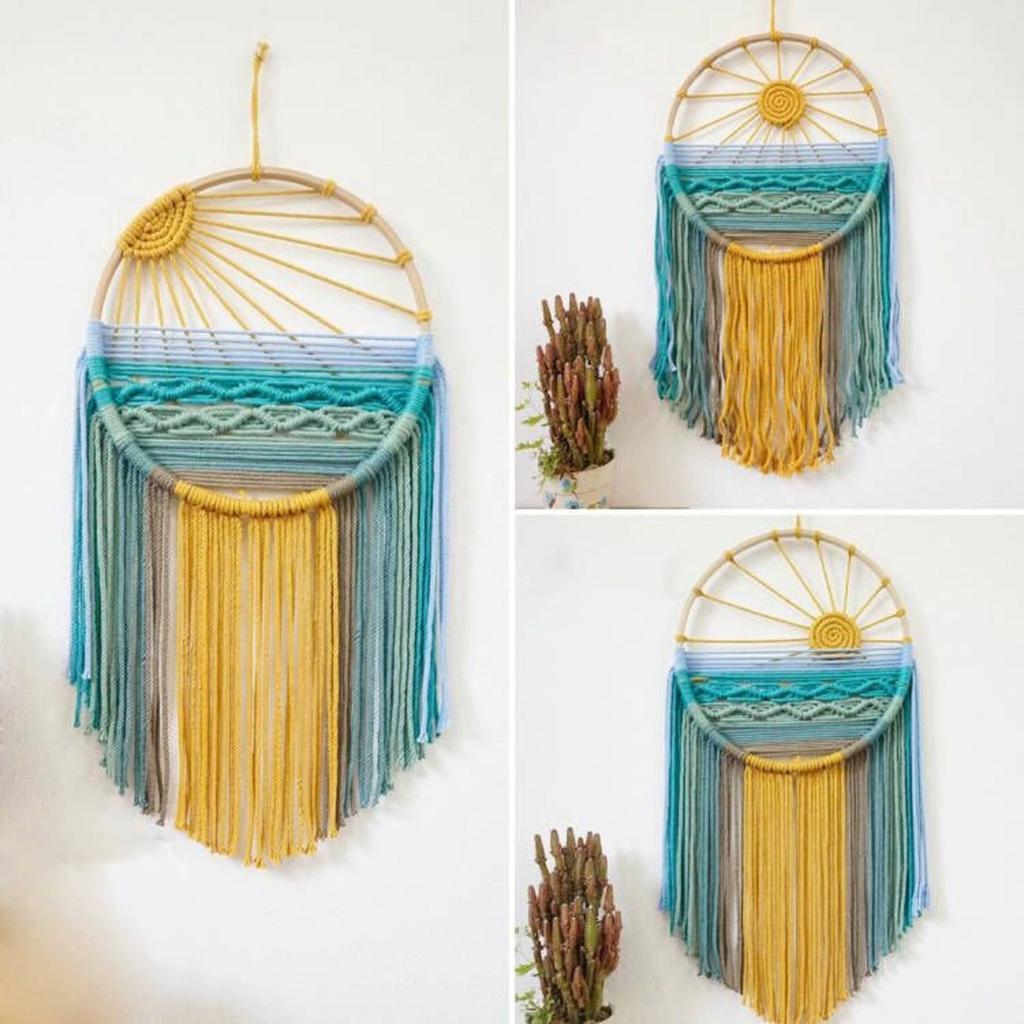 Настенный гобелен в стиле макраме, декор стен в стиле бохо-солнце, красочные тканые гобелены ручной работы с ловцами снов для гостиной, комнаты, 23,6 дюйма Д x 11,8 дюйма Ш