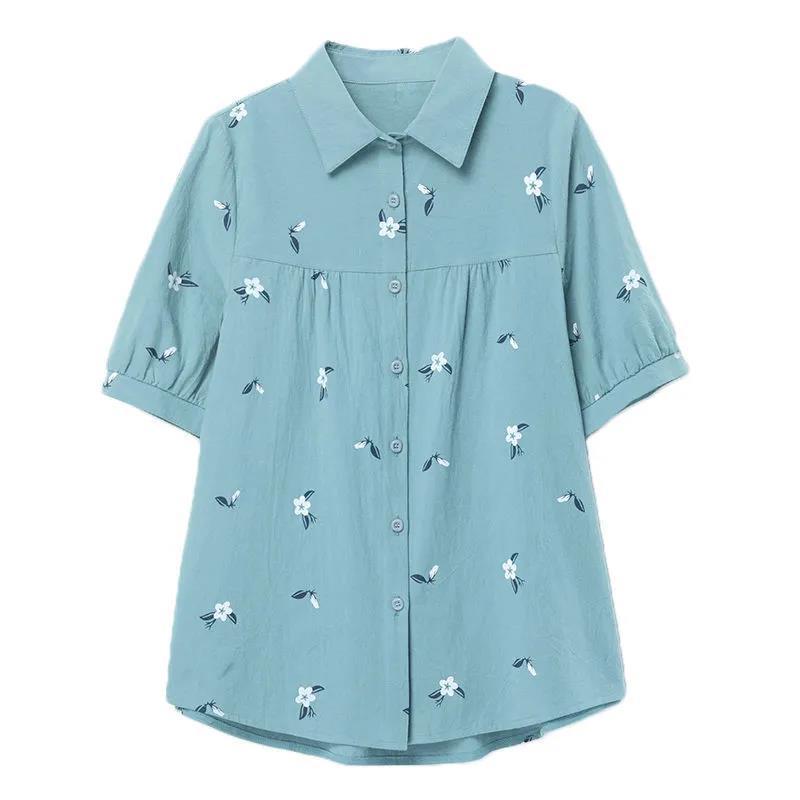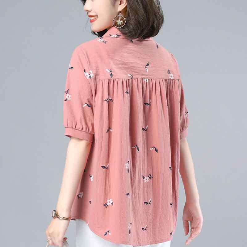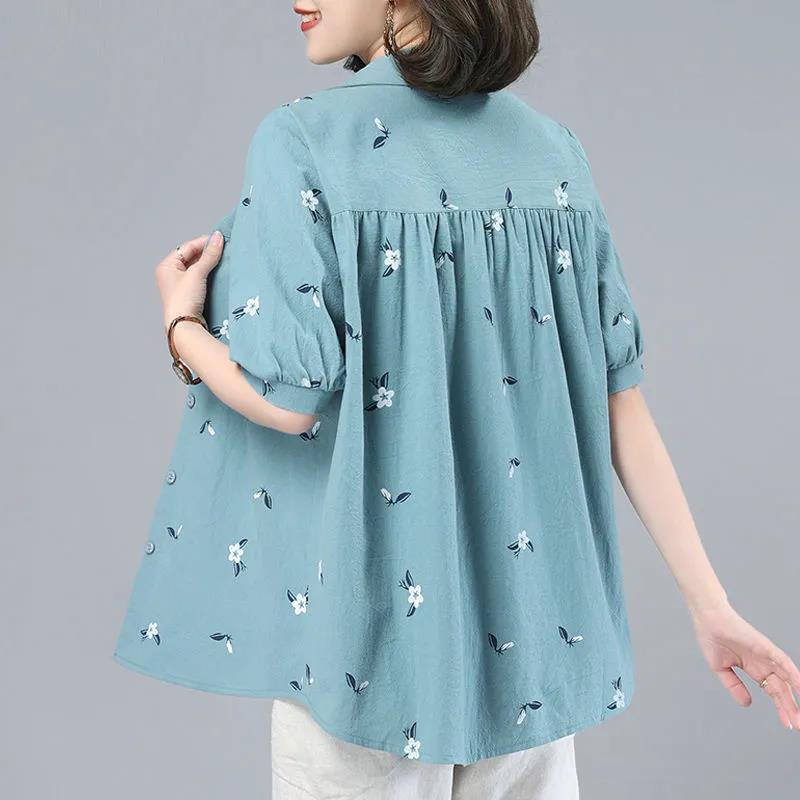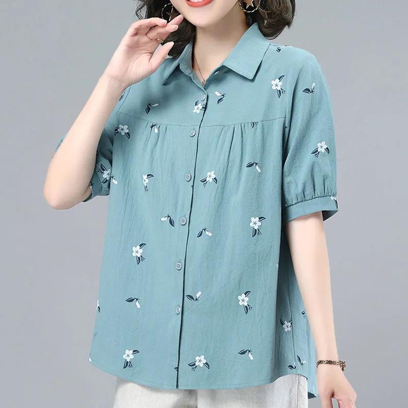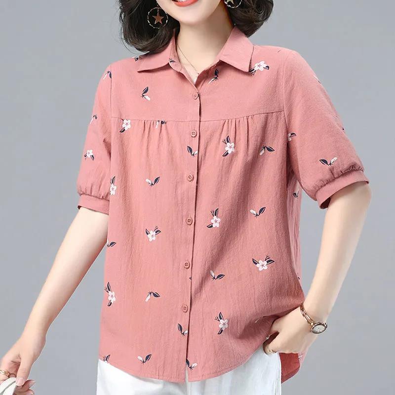Цветочные принтованные рубашки женские летние винтажные льняные рубашки поло в стиле Харадзюку с воротником-поло свободные однобортные рубашки с коротким рукавом в корейском стиле женские топы
