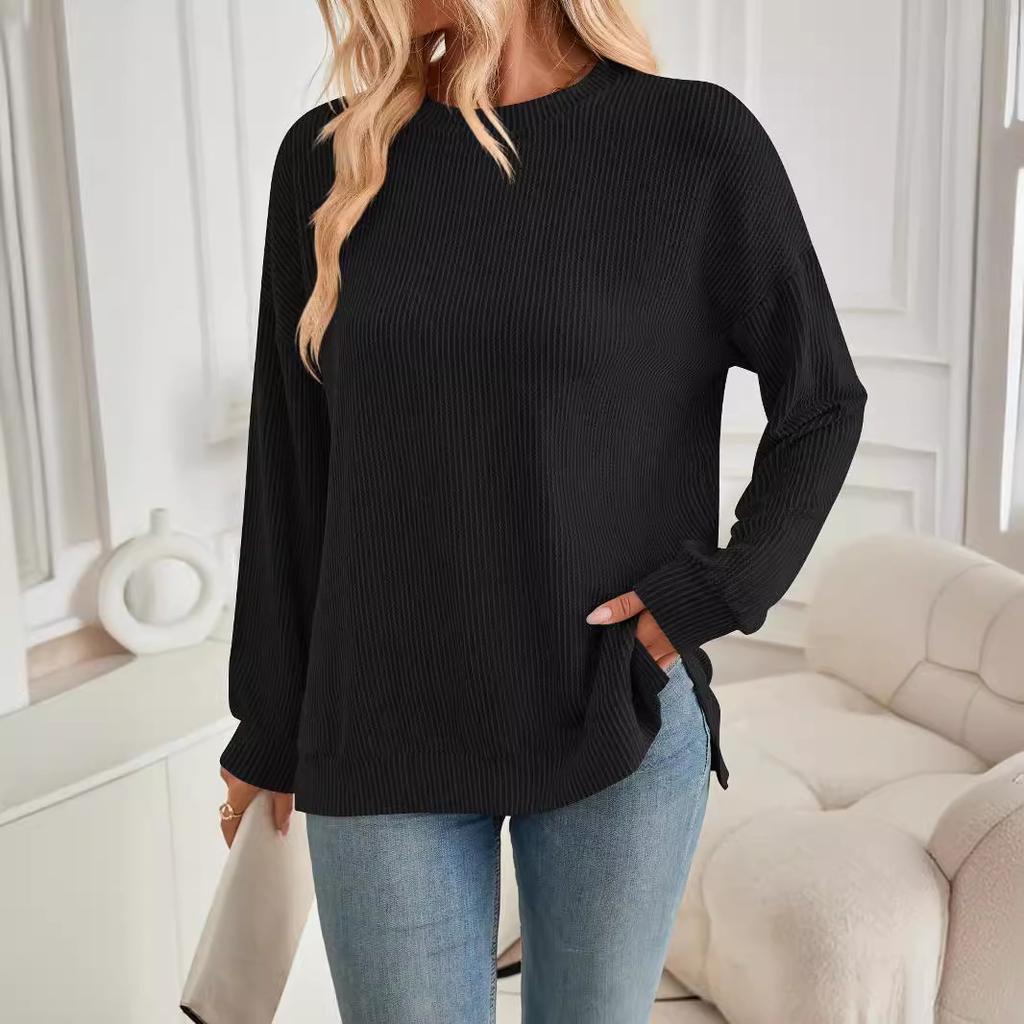 Осенняя женская свободная повседневная толстовка с длинным рукавом и разрезом в полоску с волнами больших размеров — купить товар онлайн с бесплатной доставкой по всему миру!