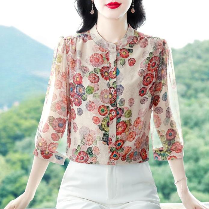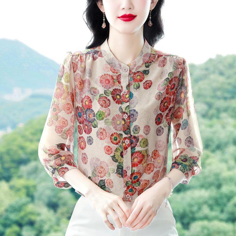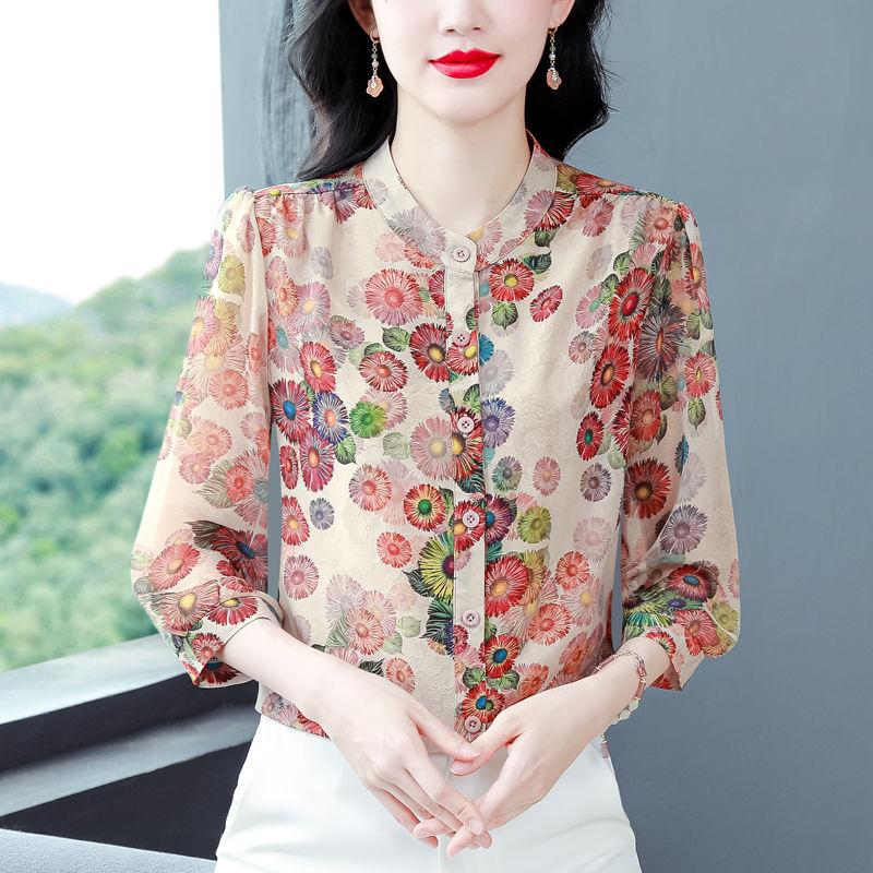 Летняя женская цветочная блузка модная повседневная блузка с принтом из шифона рубашка женские топы