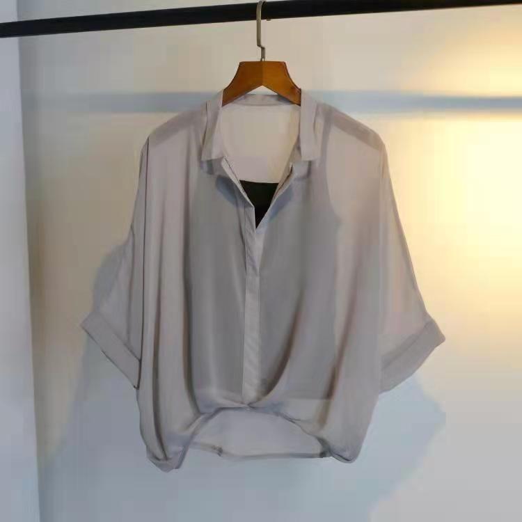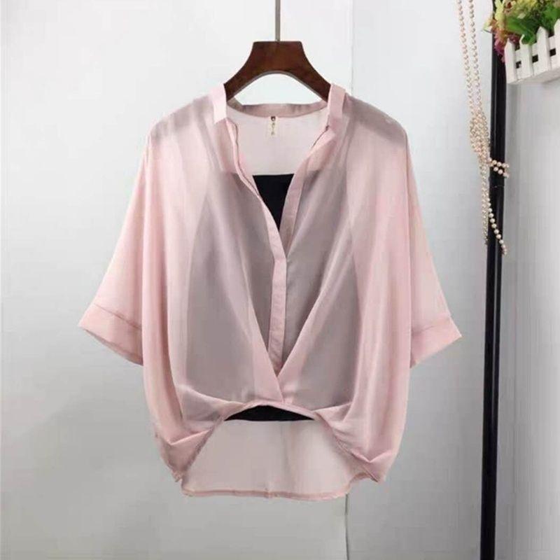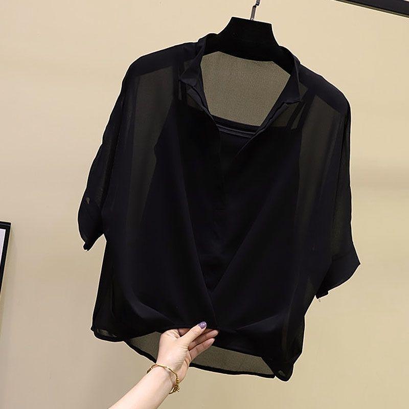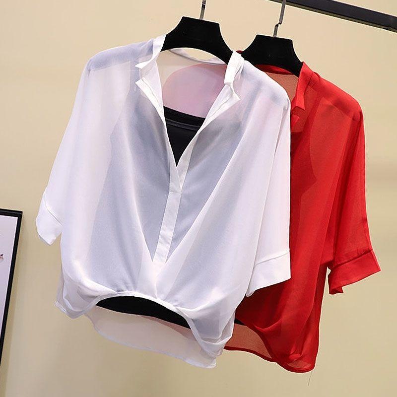 Летний шифоновый топ женский топ рукав летучая мышь свободная рубашка с короткими рукавами рубашка летучая мышь