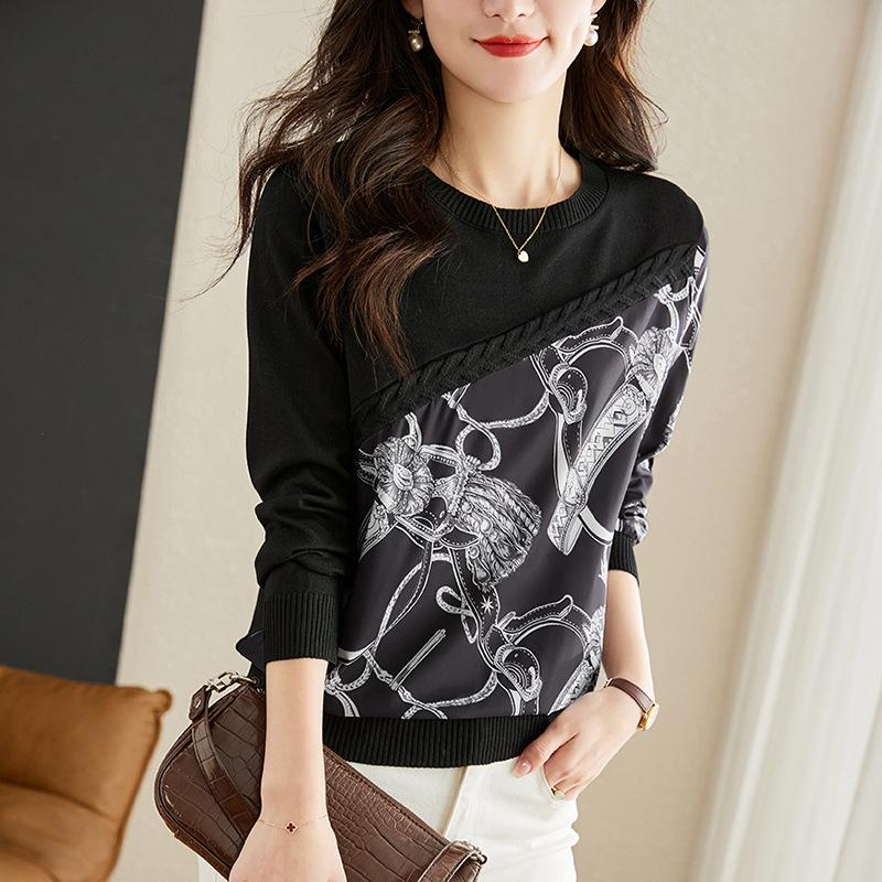 Женский трикотажный топ с длинными рукавами на весну и осень, шикарный женственный топ