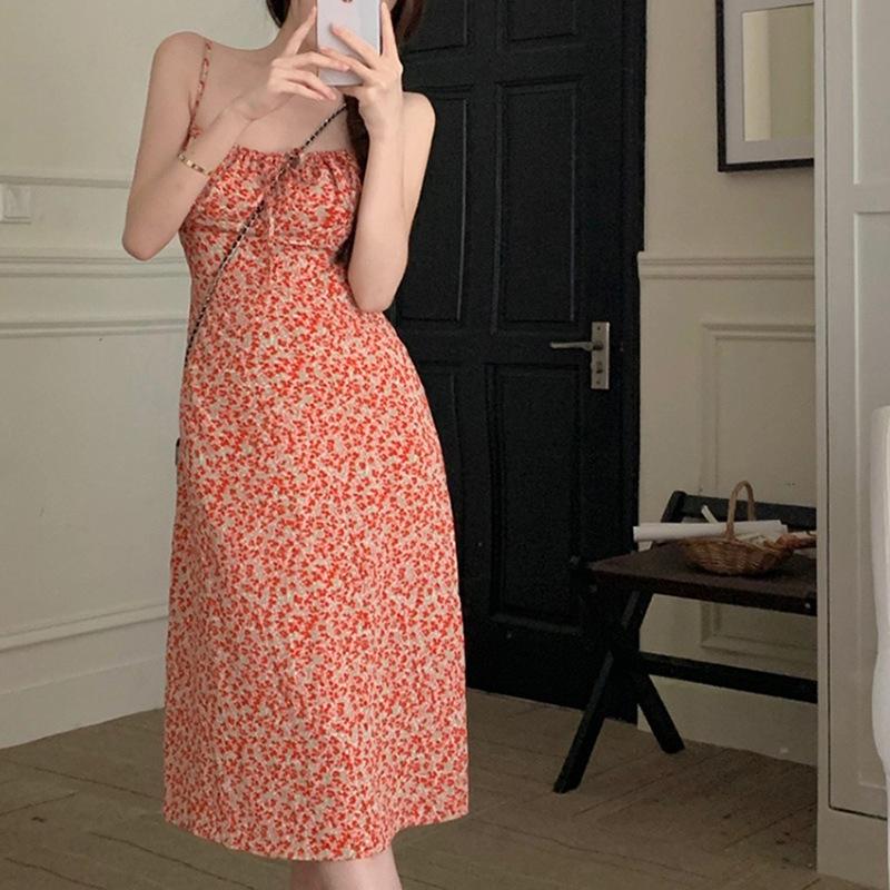 Платье на подтяжках женское летнее новое платье с тонкой талией и средней длины
