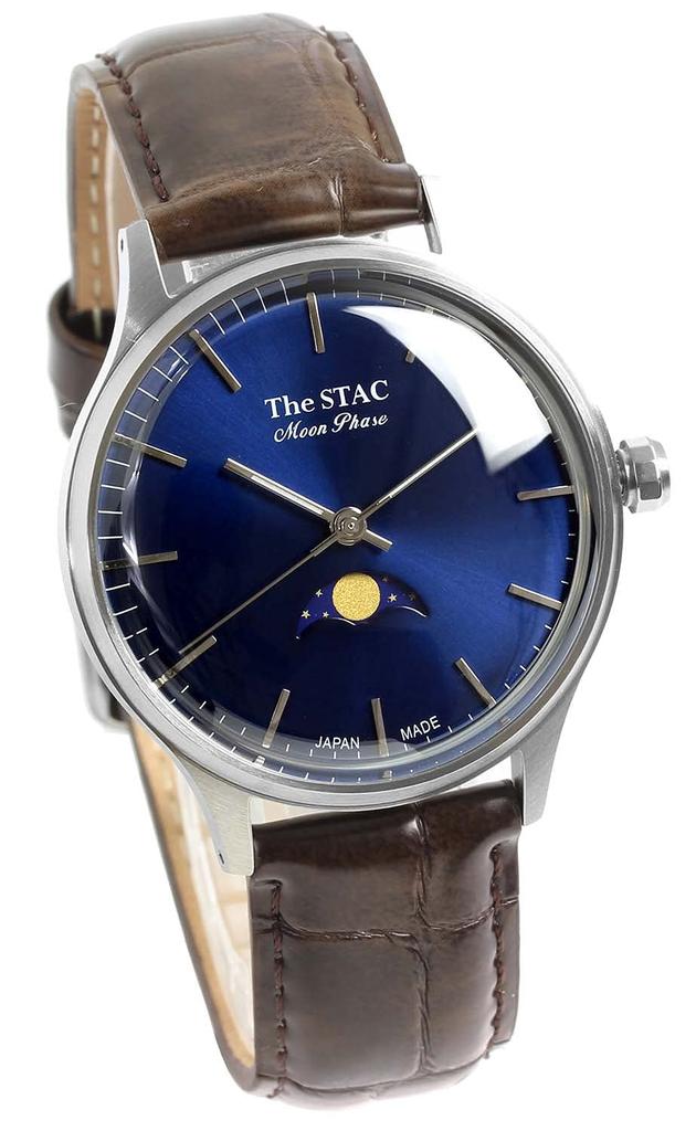 Часы STAC Made in Japan Domestic Watch 36 мм, старинные, ретро, унисекс, с полосой фаз Луны, сине-коричневые, из крокодиловой кожи [The Stack] мужские, женские, ST-MF001 — купить товар онлайн с бесплатной доставкой до всему миру!