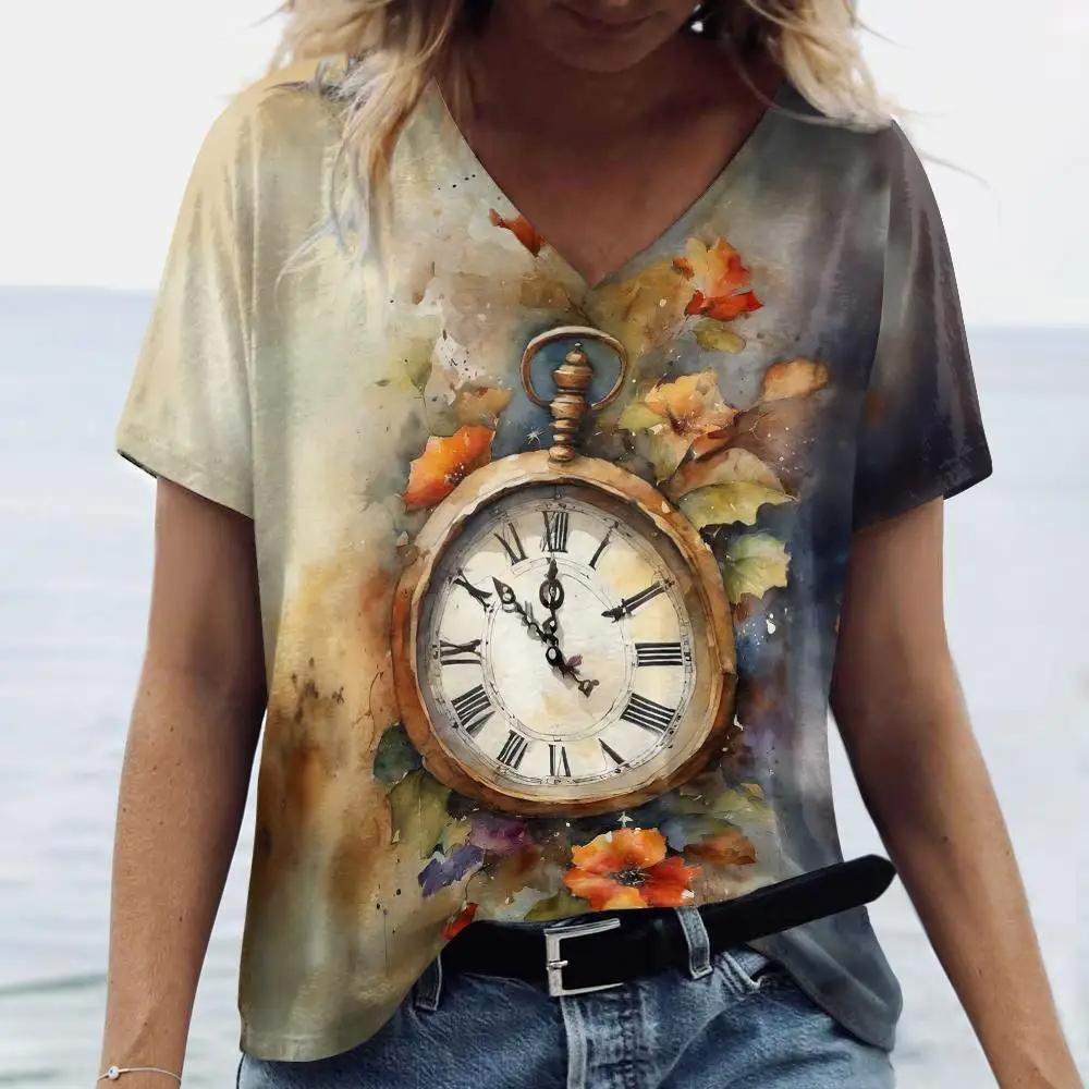 Новые летние женские модные футболки с бабочкой и V-образным вырезом, топы, футболки, женская винтажная одежда с коротким рукавом, женская повседневная уличная одежда