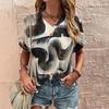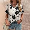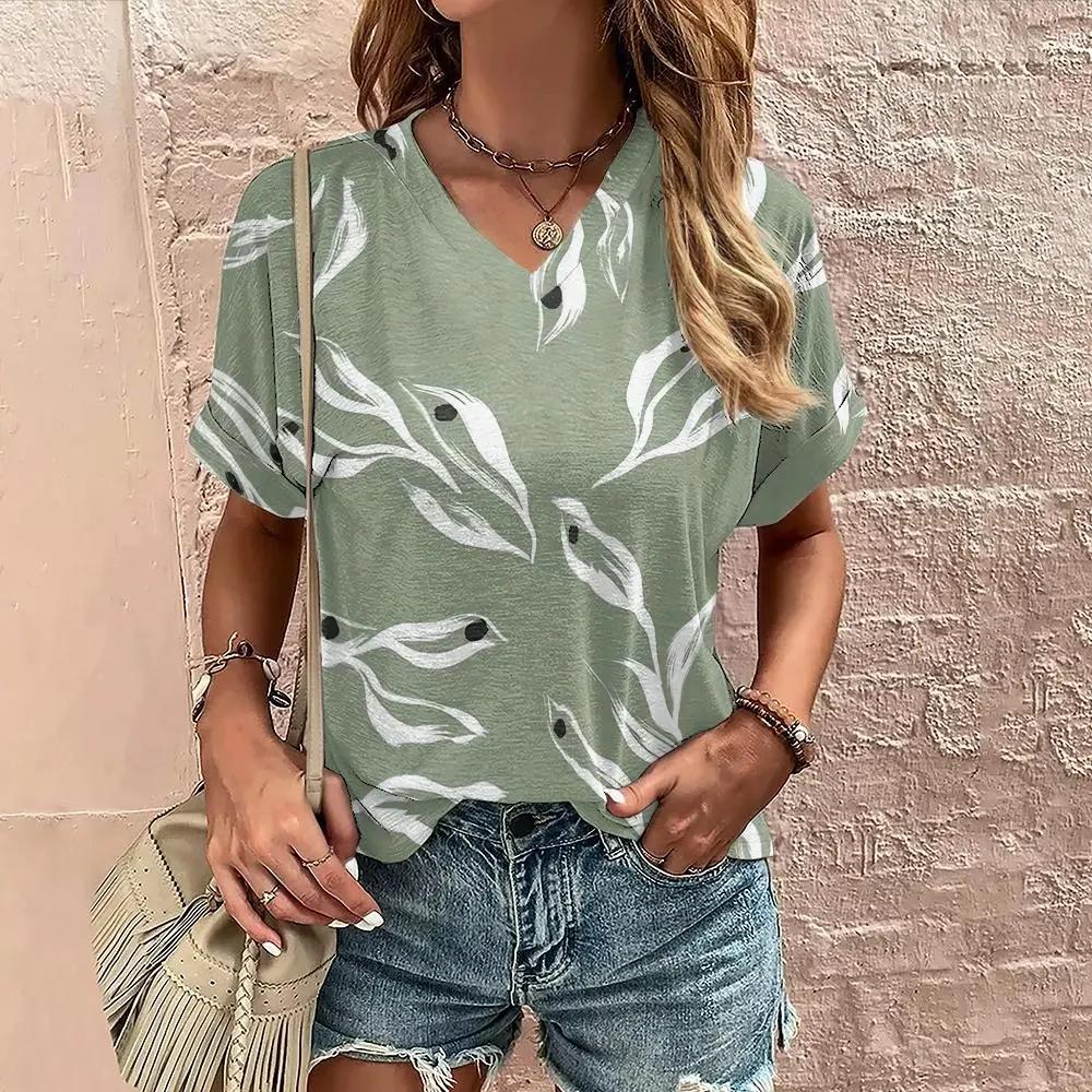 Летняя женская футболка с винтажным цветочным принтом и V-образным вырезом, футболки, женская модная тенденция, одежда с коротким рукавом, женская повседневная одежда