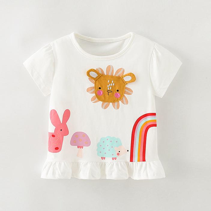 Летняя футболка из чистого хлопка с милым рисунком и принтом для девочек, детская одежда, футболка с коротким рукавом и длинными рукавами с изображением листьев лотоса для девочек, синие топы, футболки — купить товар онлайн с бесплатной доставкой до всему миру!