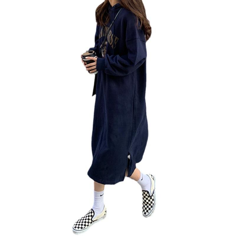 Средний и длинный свитер корейской версии Полосатое платье с длинными рукавами Зимнее корейское исполнение Свободный и тонкий бархат