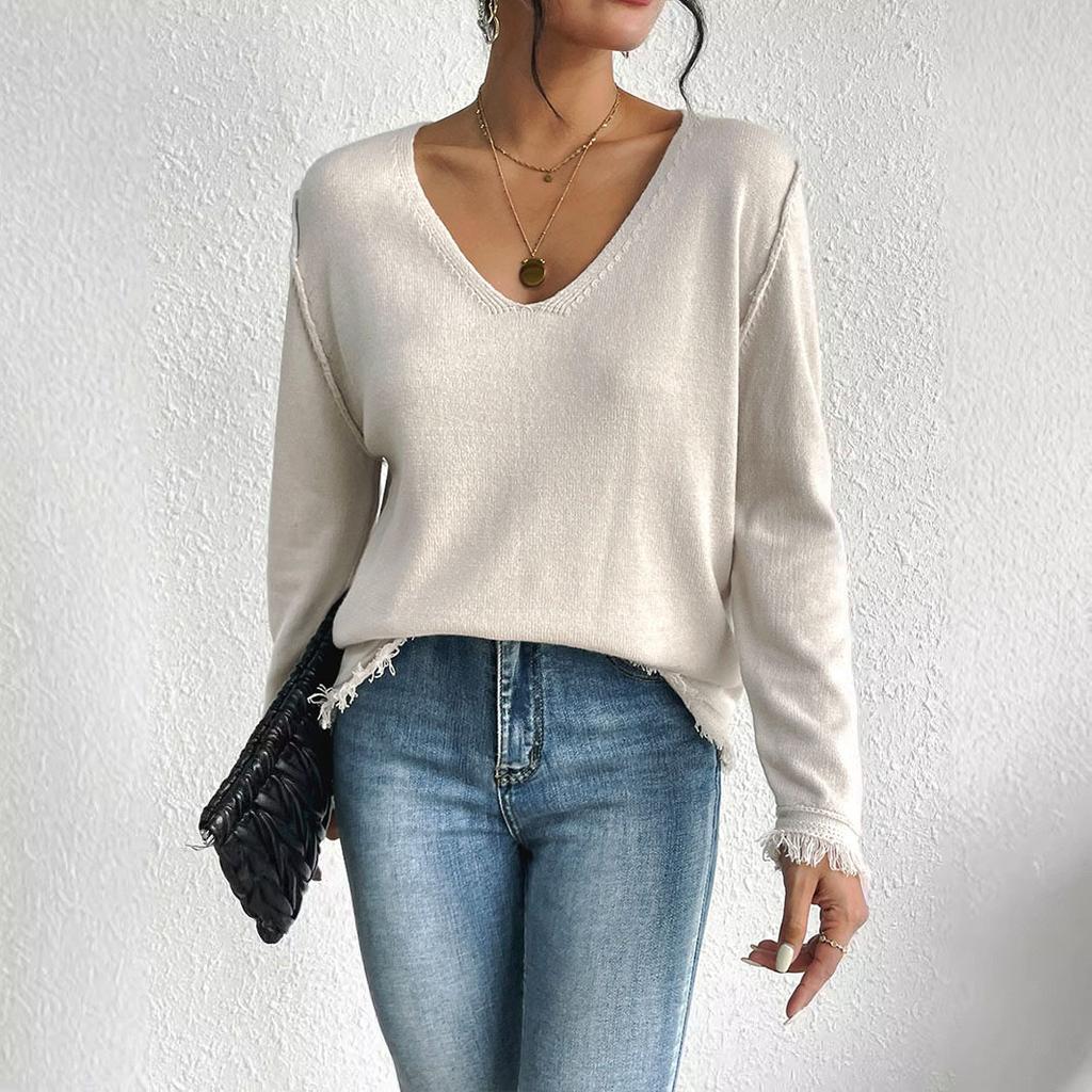 Женский свитер плотной вязки с короткими рукавами и бахромой — купить товар онлайн с бесплатной доставкой по всему миру!
