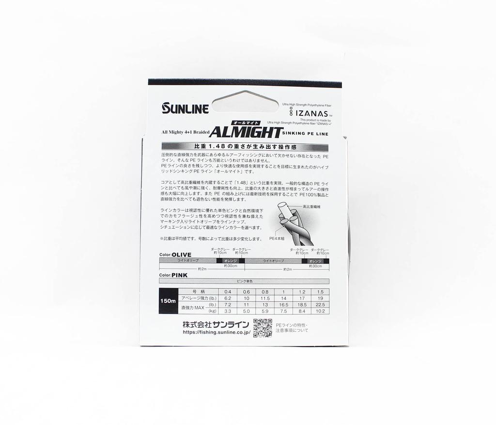 Sunline PE Line X4 Almight Sinking PE 150 м PE 0,4 7,2 фунта Розовый (5681)
