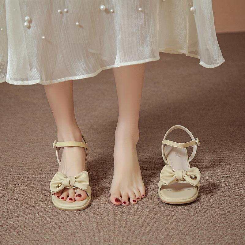 Босоножки на грубом каблуке женские весна-лето 2025 новая мода простые милые банты иностранный стиль слово фея высокие каблуки
