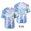 Футболка для бейсбола Tie Dye Custom, детская игровая майка, сублимационная печать, заготовки для спортивных футболок, быстросохнущая спортивная одежда, бейсбольная форма