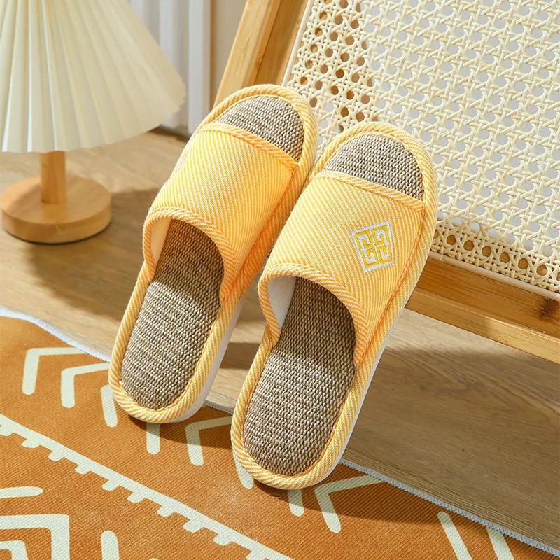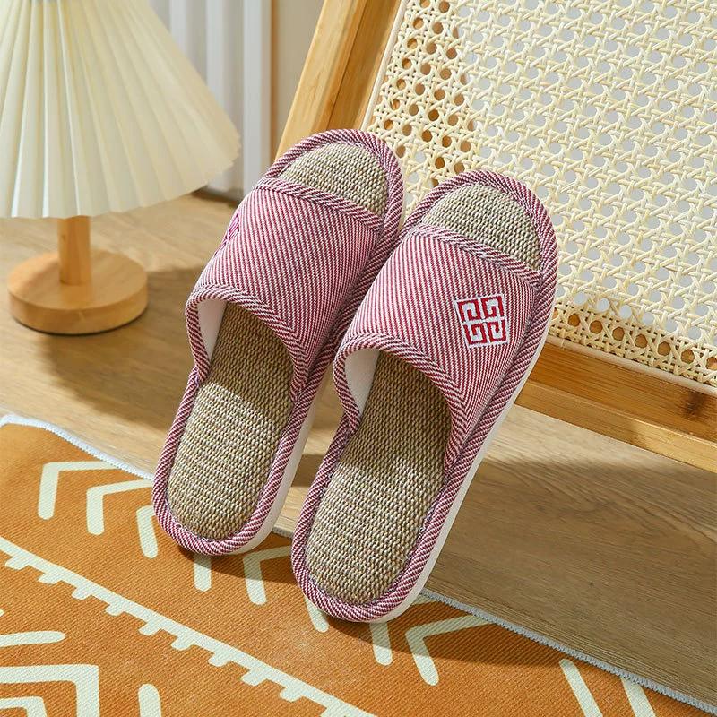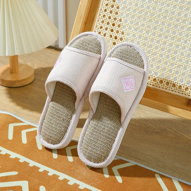 Домашние льняные тапочки для женщин и мужчин на весну и осень, толстая подошва из хлопка и льна, противоскользящие, летние