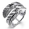 Кольцо в форме пера из стерлингового серебра для женщин, винтажная вечеринка в стиле панк, регулируемое украшение на палец, ретро-аксессуары