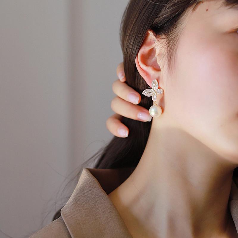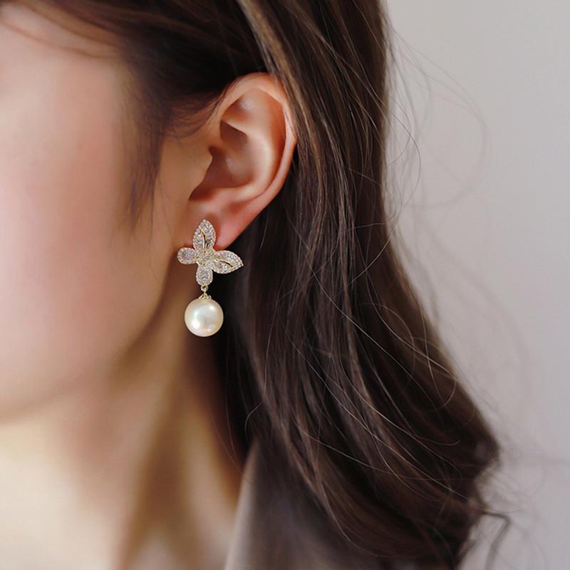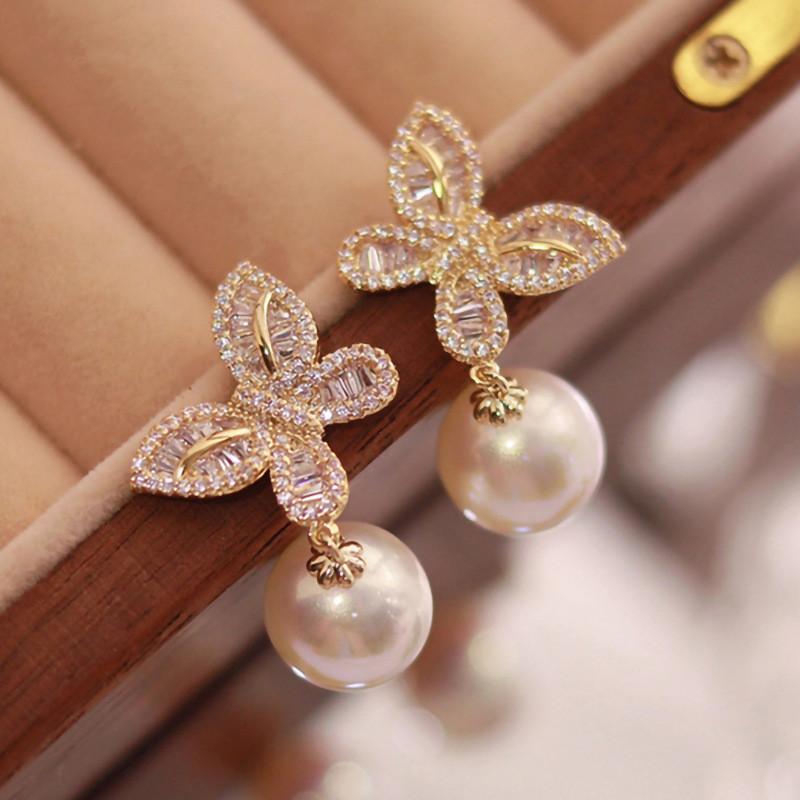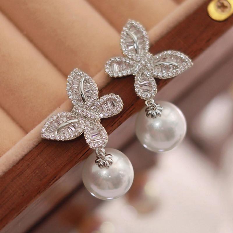 Серьги-подвески в виде бабочки из стерлингового серебра для женщин, жемчужные аксессуары для свадьбы, яркие циркониевые украшения