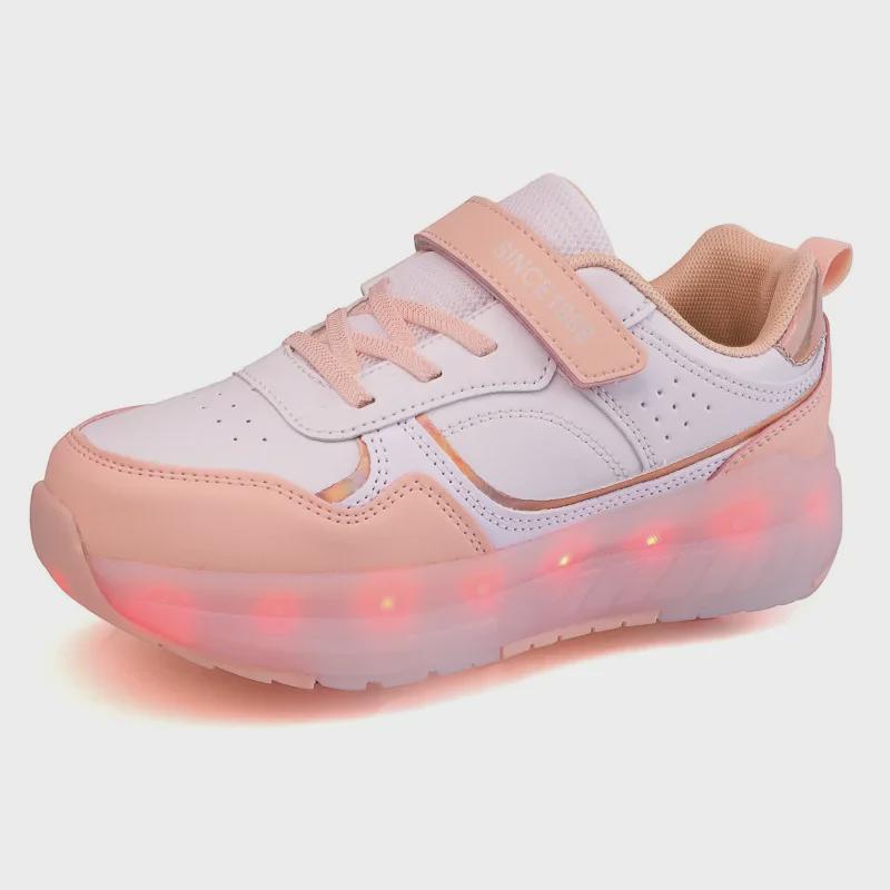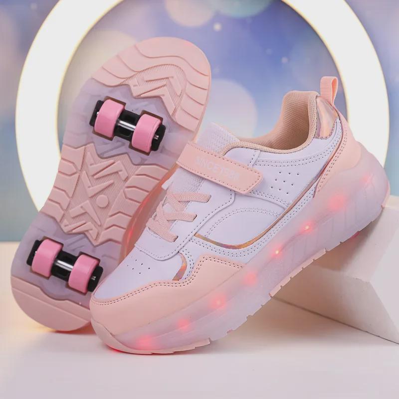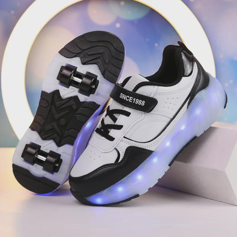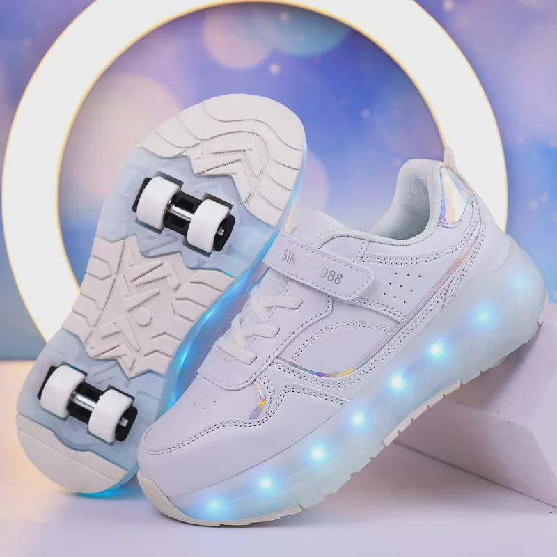 Роликовые коньки с подсветкой для мальчиков и девочек, перезаряжаемые - беговые кроссовки на четырех колесах с переключателем