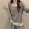 Большие размеры Женская осенняя свободная приталенная рубашка «два в одном» с длинным рукавом