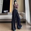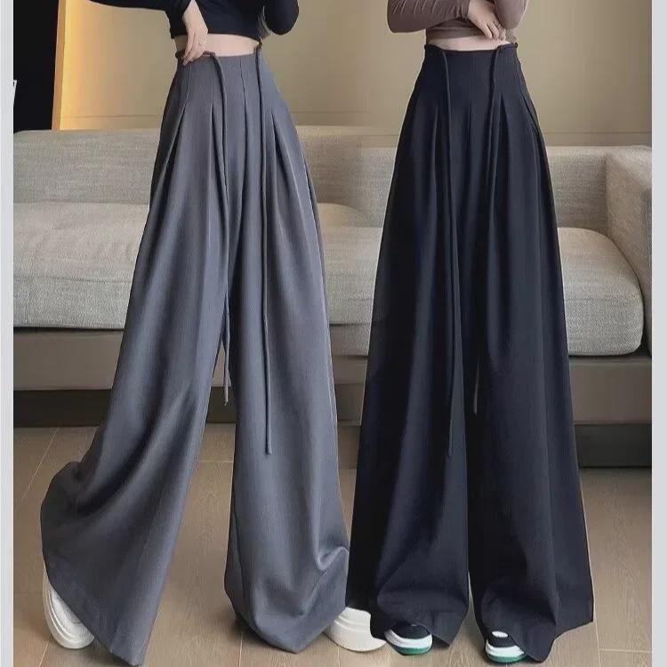 Осенние женские высококачественные серые повседневные брюки со шнуровкой и утягивающим живот широкими штанинами длиной до пола