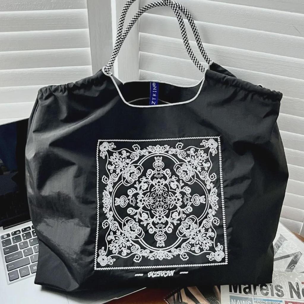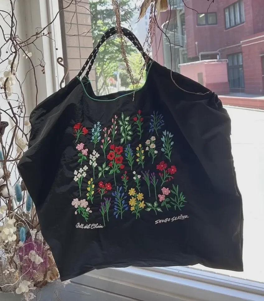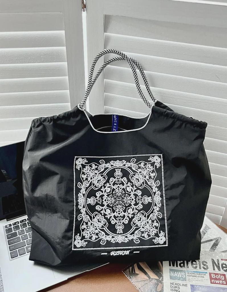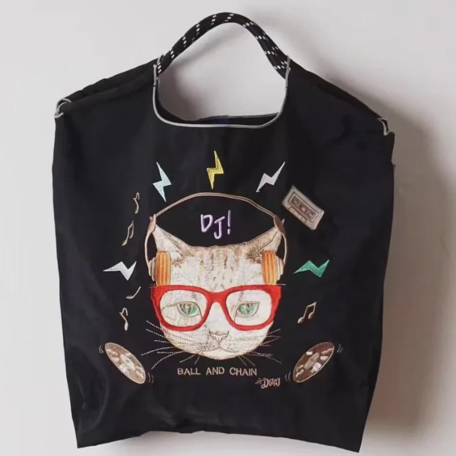 Универсальная черная вышитая нейлоновая сумка для покупок - большая вместительная сумка от китайского модного бренда