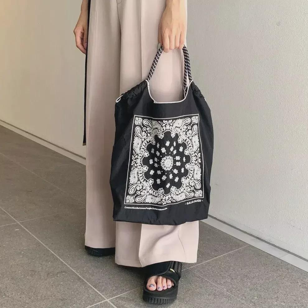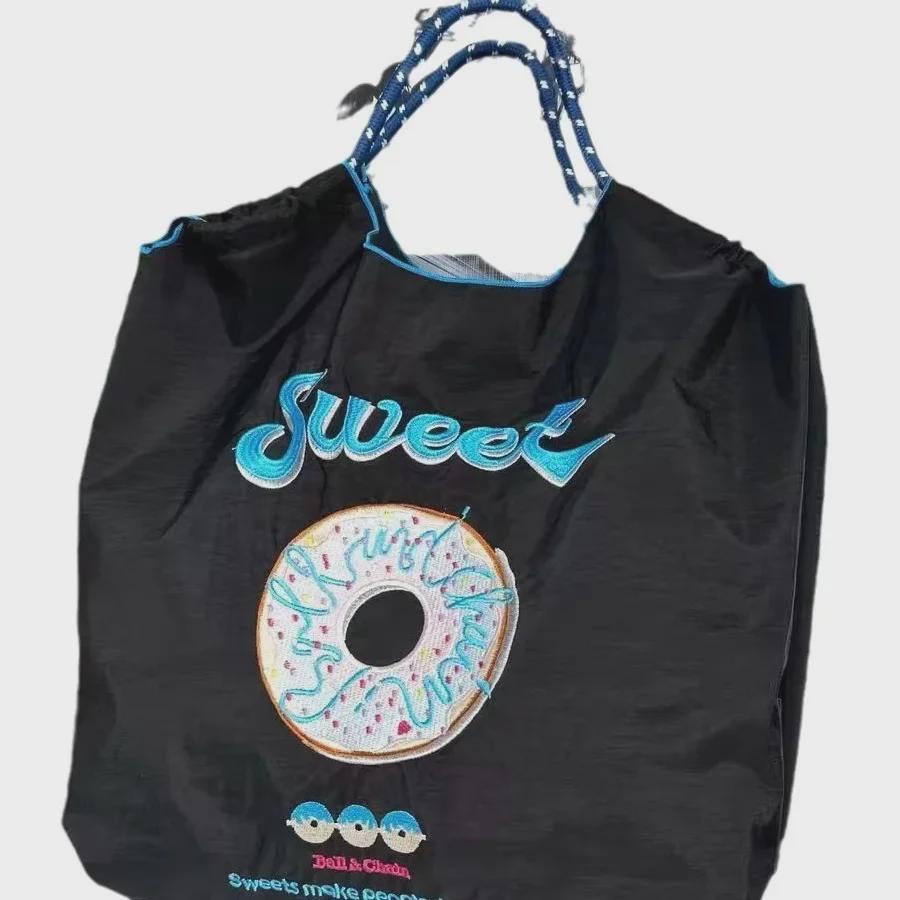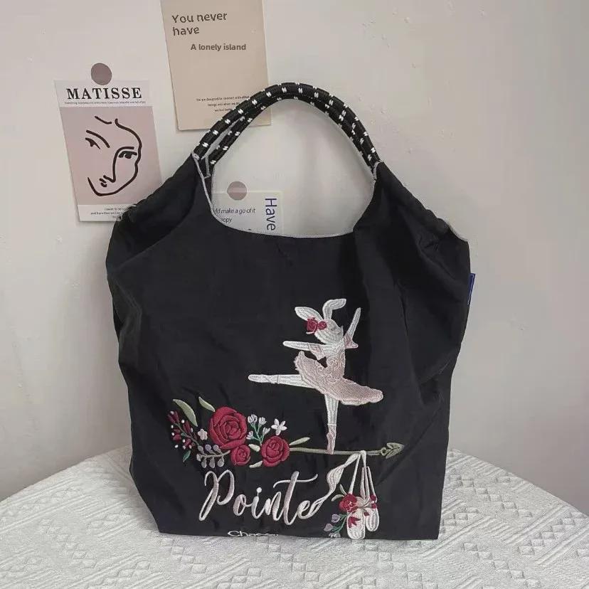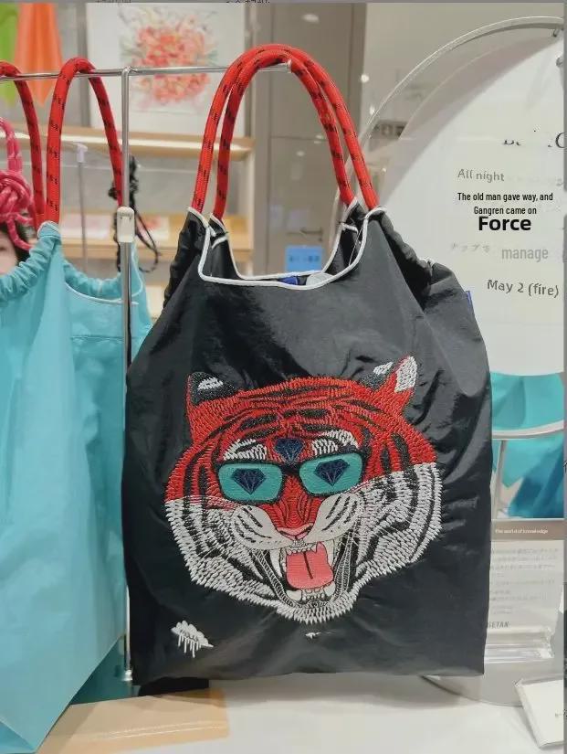 Универсальная черная вышитая нейлоновая сумка для покупок - большая вместительная сумка от китайского модного бренда