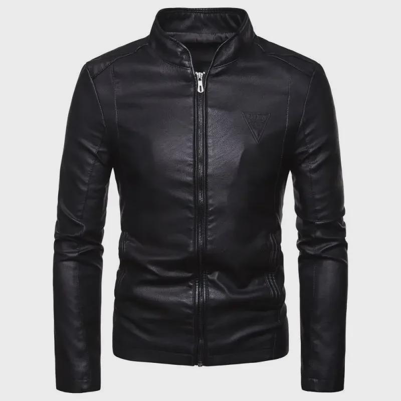 Мужская куртка из искусственной кожи в корейском стиле с воротником-стойкой - большой размер, осенне-зимняя мотоциклетная куртка