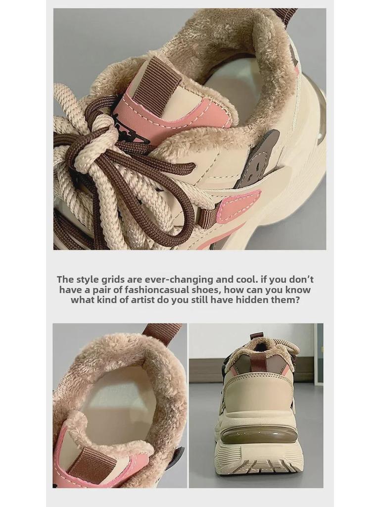 Женские зимние плюшевые кроссовки Dad 2024 года: Универсальные, увеличивающие рост, модные спортивные туфли G17-1