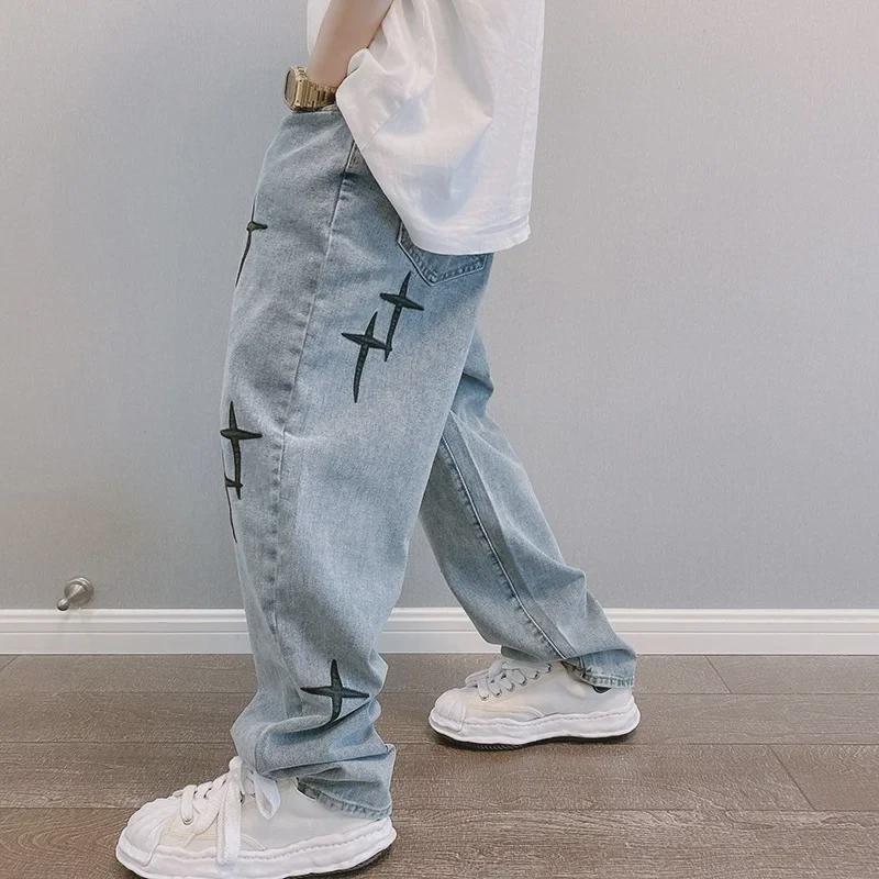 Мужские джинсы весна/осень 2022 года, прямые, свободные, в корейском стиле, повседневные, с широкими штанинами, с девятью точками