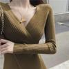 Свитер облегающего кроя с V-образным вырезом и длинными рукавами из пряжи Core-Spun - пуловер в корейском стиле 2025 года — купить товар онлайн с бесплатной доставкой по всему миру!