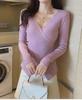 Свитер облегающего кроя с V-образным вырезом и длинными рукавами из пряжи Core-Spun - пуловер в корейском стиле 2025 года
