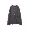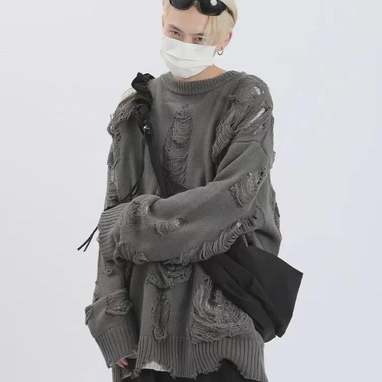 Мужской свитер свободного кроя из двух частей с рваными краями в американском стиле 2024 года, трикотаж, длинный рукав, для весны/осени.