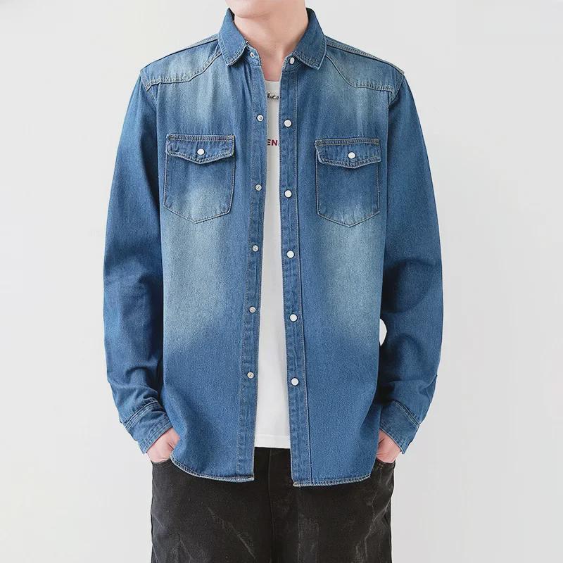 Весна/осень 2023 г. Мужская облегающая джинсовая куртка-рубашка в корейском стиле с длинными рукавами