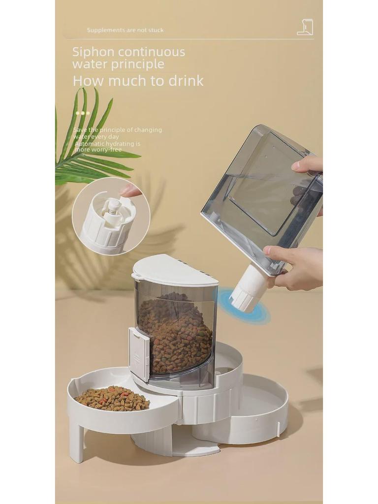 Многофункциональная автоматическая кормушка для домашних животных с двумя мисками и ведром для хранения