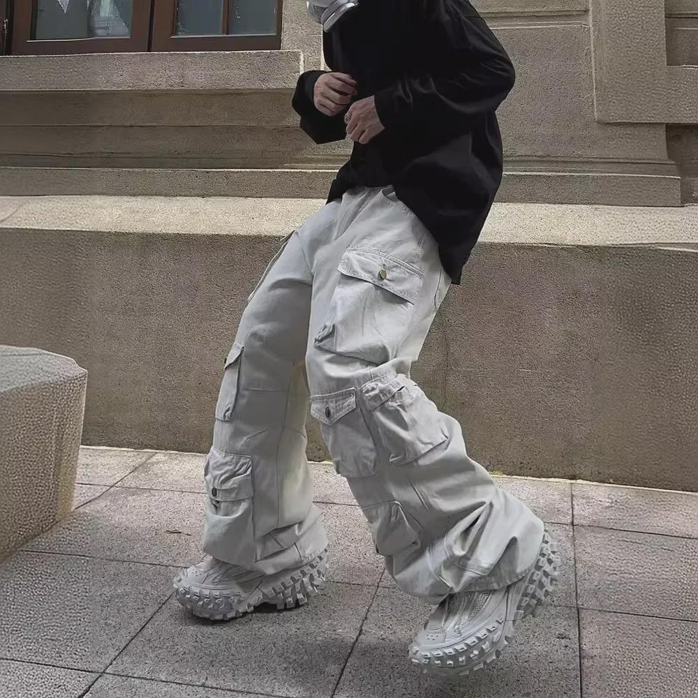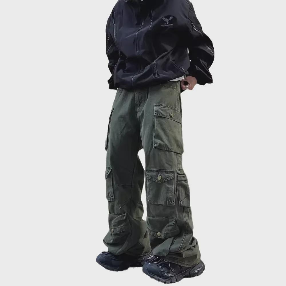 2024 Ретро европейские и американские мужские свободные повседневные брюки с широкими штанинами и множеством карманов