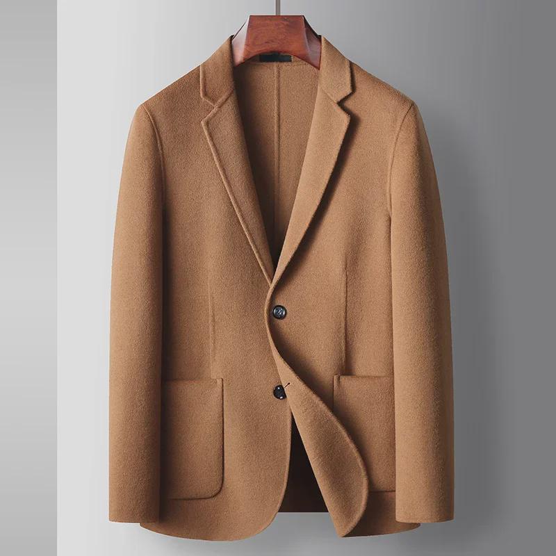 Мужской шерстяной деловой костюм - Осень/Зима 2024: Однотонное, ручная работа, двухстороннее, плотное повседневное пальто