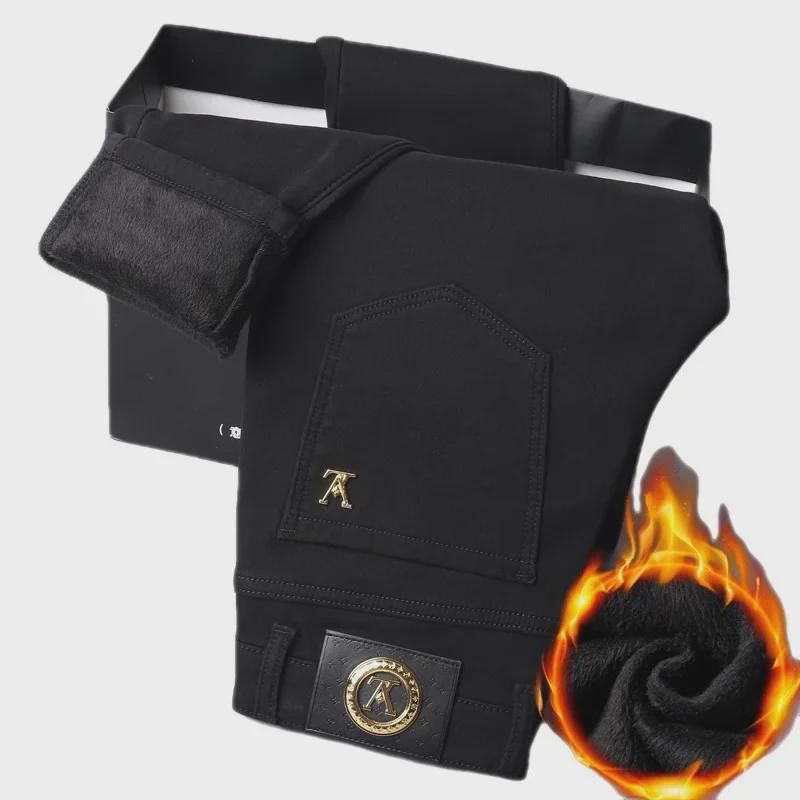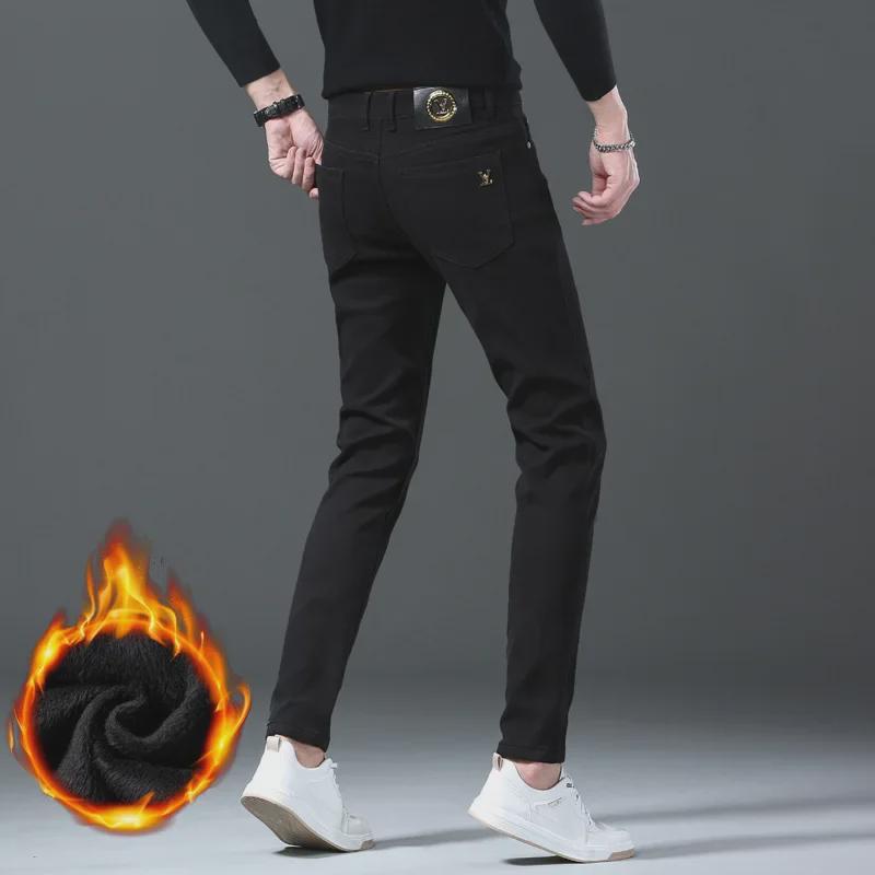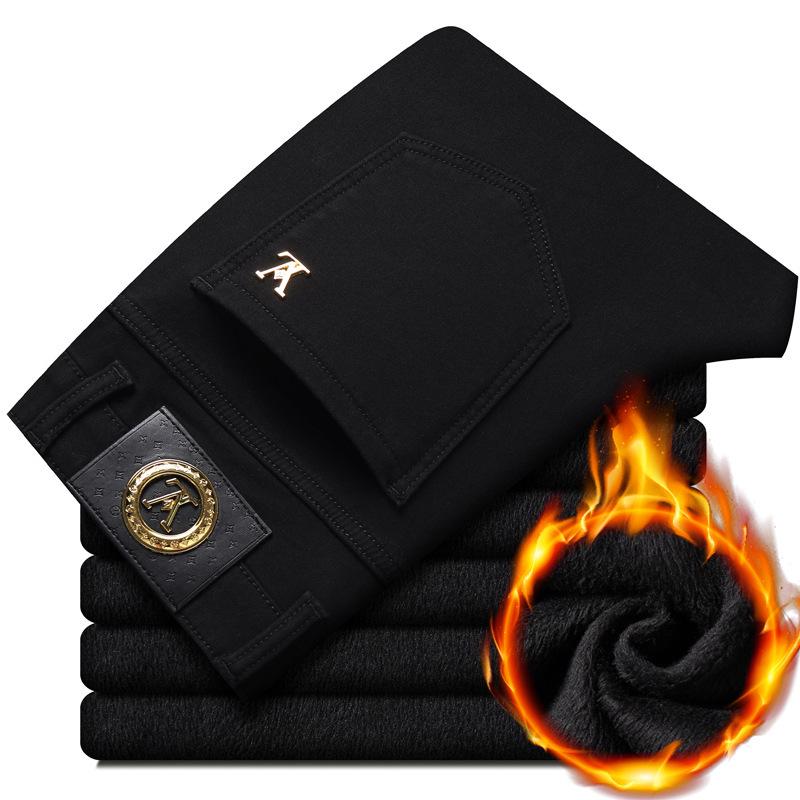 Мужские узкие прямые деловые джинсы премиум-класса с эластичной бархатной подкладкой для зимы