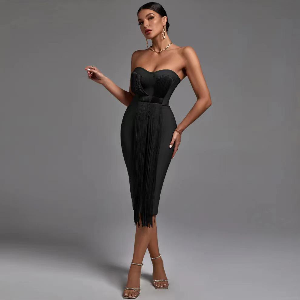 2024 Элегантное платье-бандаж без рукавов с кисточками для женщин