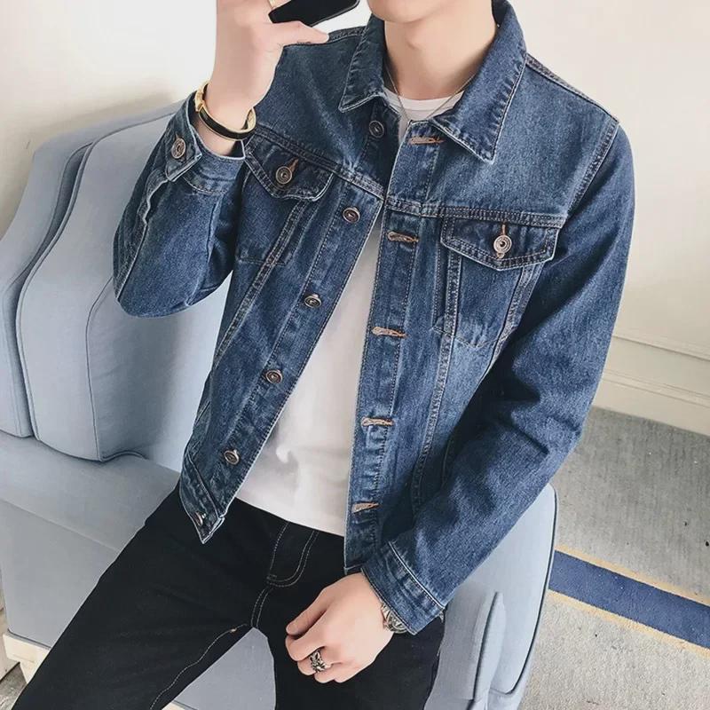 Мужская модная свободная джинсовая куртка в гонконгском и корейском стиле на весну/осень
