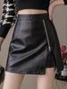 Юбка-трапеция с разрезом и высокой талией из черной искусственной кожи 2023 года, осень/зима — купить товар онлайн с бесплатной доставкой до всему миру!