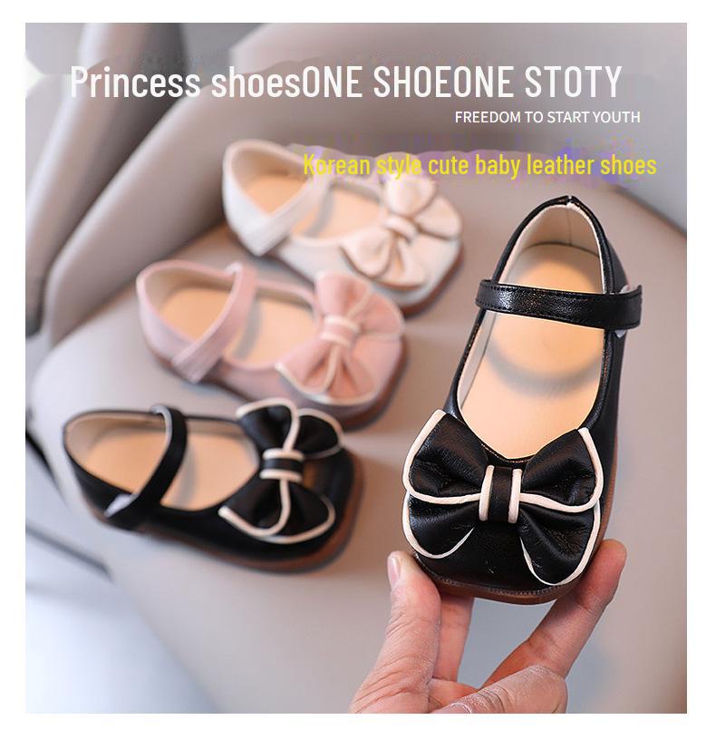 Туфли принцессы для девочек с большим бантом и мягкой подошвой — весенне-осенний стиль, корейский дизайн, кожаные туфли с квадратным носком