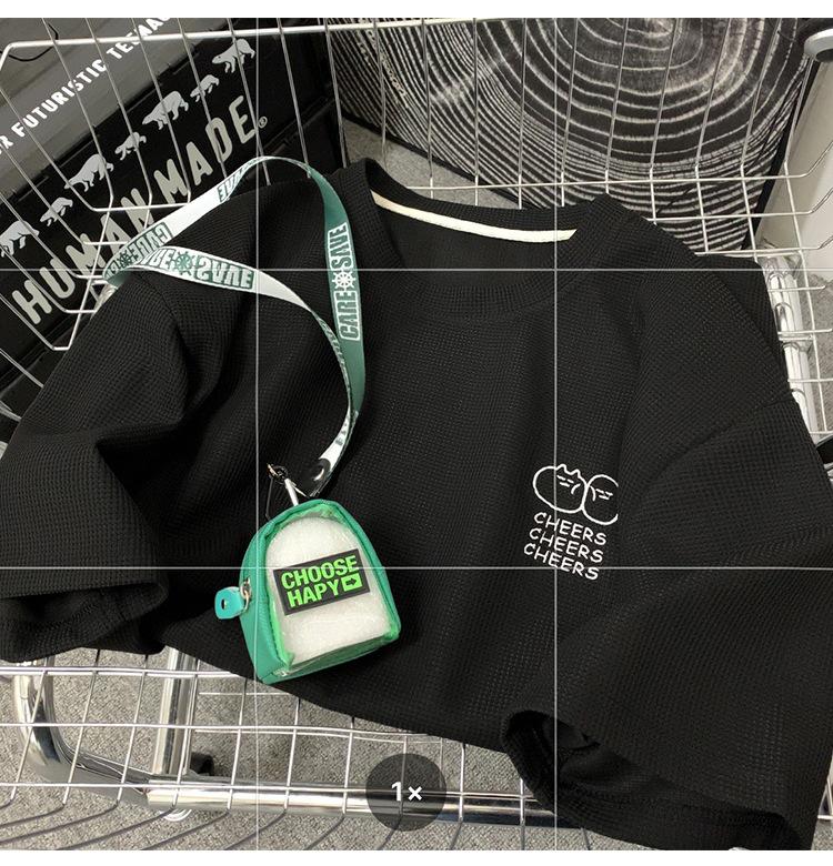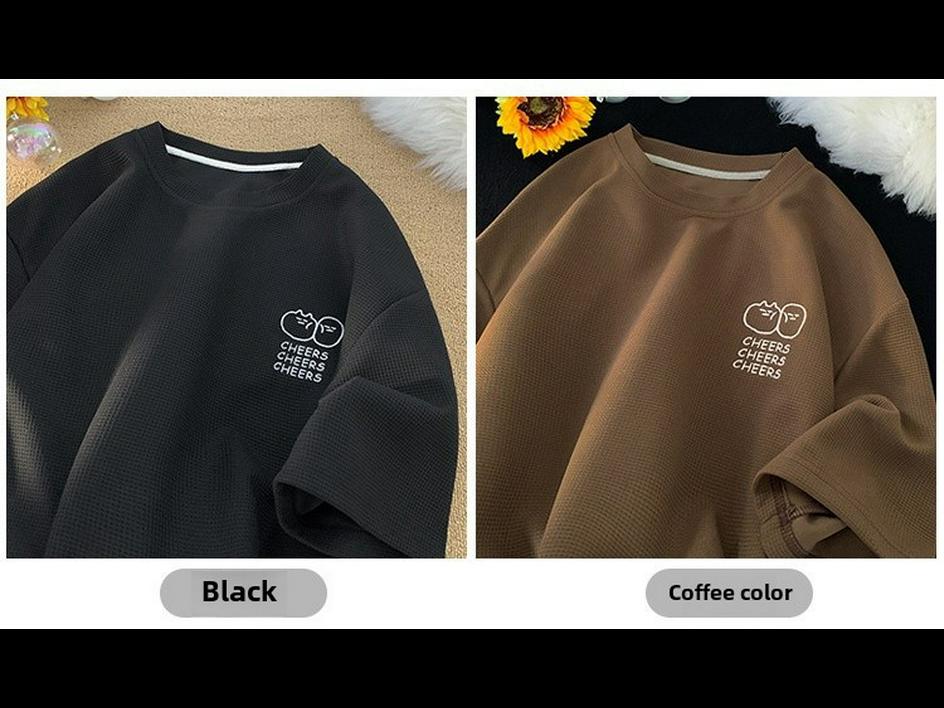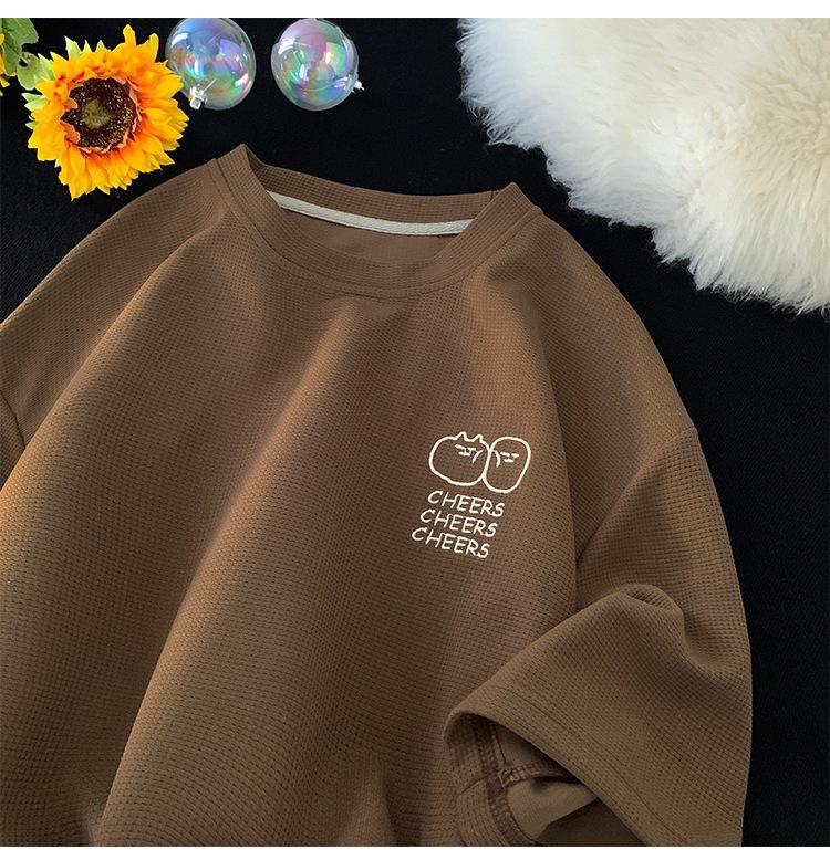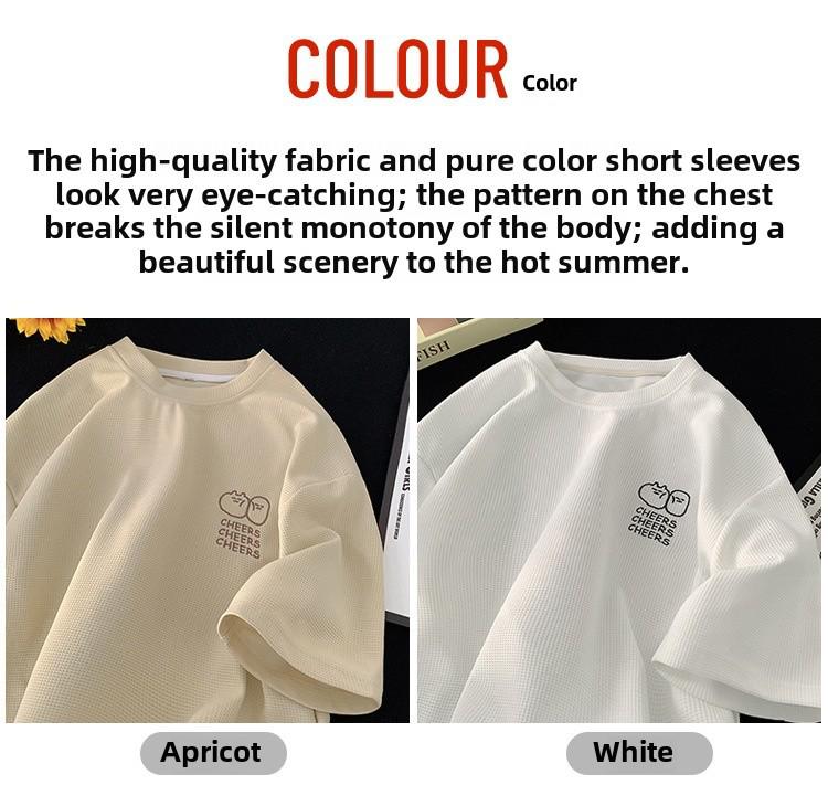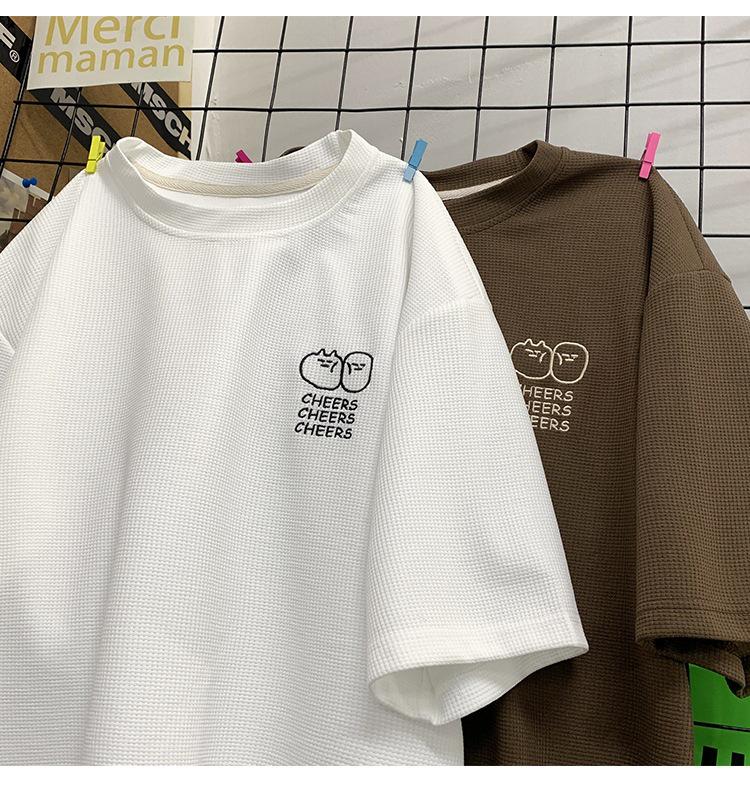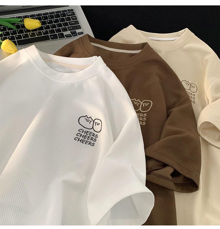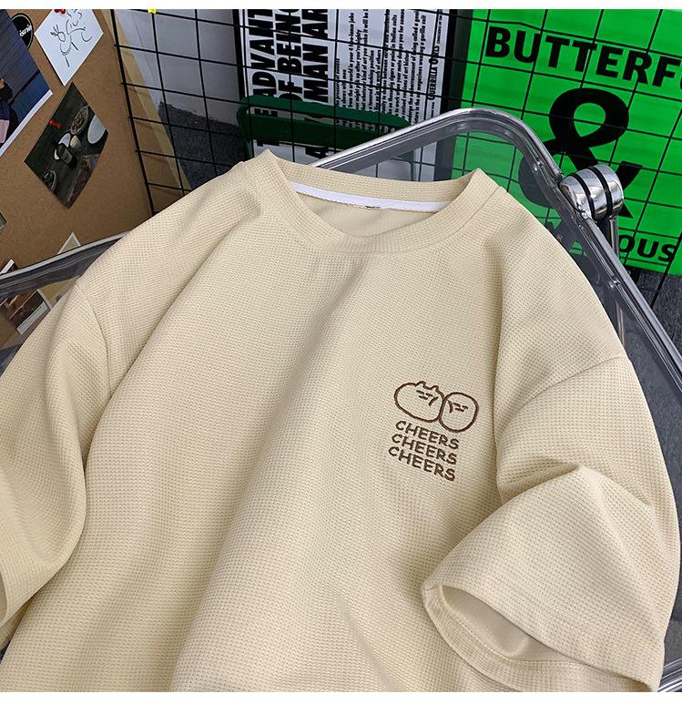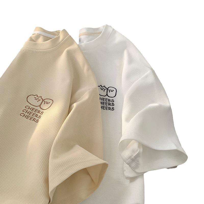 Мужская летняя футболка с коротким рукавом из вафельного шелка Ice Silk - корейская мода, вышитая, свободный крой, американский тяжеловес